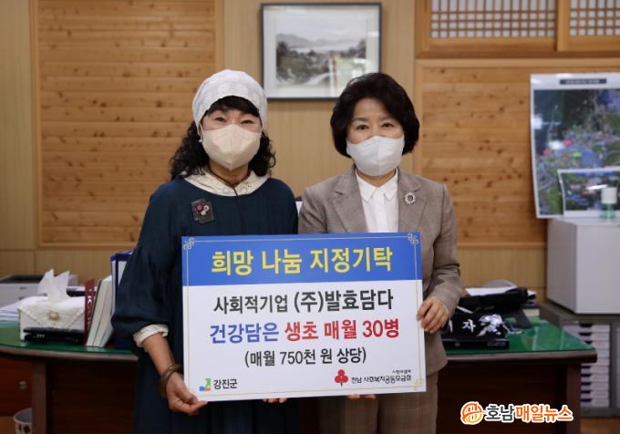 °Áø±ºÀº Áö³ 22ÀÏ »çȸÀû±â¾÷ ÇϳªÀÇÁ¤¿ø ¢ß¹ßÈ¿´ã´Ù(´ëÇ¥ ±èÇϳª)´Â °Áø±º »çȸº¹Áö½Ã¼³¿¡ Àü´ÞÇØ ´Þ¶ó¸ç 75¸¸ ¿ø »ó´çÀÇ µ¿¹é²É »ýÃÊ(1§¤µéÀÌ) 30º´À» °Áø±º¿¡ ±âŹÇß´Ù.