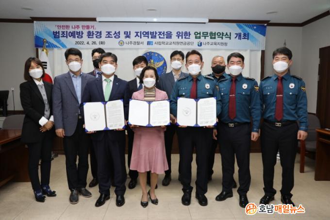 À̹ø Çù¾àÀº ³ªÁÖ °ü³» ¼¼ ±â°üÀÌ »óÈ£Çù·ÂÇÏ¿© ÅëÇзÎ, µîÇϱ·±æ ¿ì¹üÁö¿ª CCTV ¼³Ä¡ µîÀ» ÅëÇØ û¼Ò³â ºÒ¾È Áö¿ª ¹× Çб³ ÁÖº¯ À§ÇØ¿ä¼Ò Á¦°Å µîÀÇ ³ë·ÂÀ¸·Î ¾ÈÀüÇÑ ±³À°È¯°æ Á¶¼ºÀ» À§ÇÏ¿© ¸¶·ÃµÇ¾ú´Ù. ¶ÇÇÑ Áö¿ª»çȸ À¯°ü±â°üÀÇ Çù·ÂÀ¸·Î ÇлýµéÀÇ ¾ÈÀü È®º¸¸¦ À§ÇÑ Áö¿ª°øµ¿Ã¼ Ä¡¾È Ȱµ¿ÀÌ Á¤ÂøµÇµµ·Ï ³ë·ÂÇϱâ·Î Çù¾àÇß´Ù.