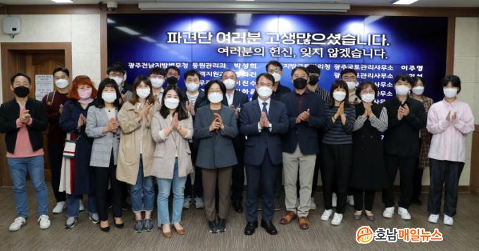 Äڷγª19 È®»ê¼¼°¡ Áö¼ÓµÇÀÚ ±¤»ê±¸º¸°Ç¼Ò¿¡´Â 1Â÷¿Í 2Â÷·Î ³ª´² ÃÑ 40¸íÀÇ Áß¾ÓºÎó ÀηÂÀÌ ÆÄ°ßµÆ´Ù. À̵éÀº ¼±º°Áø·á¼Ò¿Í ¿ªÇÐÁ¶»çÆÀ¿¡ ¹èÄ¡µÇ¾î °³ÀÎ ÀÚ°¡Å°Æ® °Ë»ç, ÀüÀÚ¹®ÁøÇ¥ ÀÛ¼º¹ý ¾È³», È®ÁøÀÚ ±âÃÊ¿ªÇÐÁ¶»ç µîÀ» Áö¿øÇß´Ù.