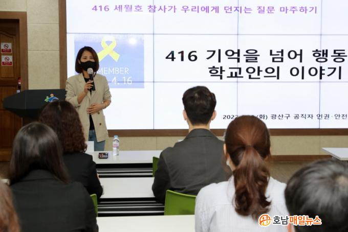 ±¤»ê±¸´Â Áö³ 26ÀÏ ±¸Ã» 2Ãþ »óȲ½Ç¿¡¼ ¡®4.16 ±â¾ïÀ» ³Ñ¾î ÇൿÇÏ´Â Çб³ ¾ÈÀÇ À̾߱⡯¸¦ ÁÖÁ¦·Î °øÁ÷ÀÚ ÀαÇ‧¾ÈÀü ±³À°À» ÁøÇàÇß´Ù. ¼¼¿ùÈ£ Âü»ç 8ÁÖ±â, ±â¾ï°ú ¾à¼ÓÀÇ ´ÞÀ» ¸Â¾Æ ¸¶·ÃÇÑ ±³À°À¸·Î, ½ÇÁ¦ ±³À° ÇöÀå¿¡¼ ¡®¼¼¿ùÈ£ ±³ÈÆ¡¯À» ¾Ë¸®´Â Åä·Ð‧üÇèÇü ¼ö¾÷À» ÁøÇàÇϰí ÀÖ´Â À̰ÇÁø ±³»ç°¡ °»ç·Î ³ª¼¹´Ù.