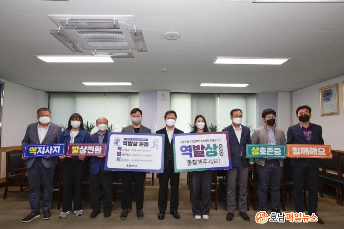¡®¿ª¡¤¹ß¡¤»ó¡¯Àº ¡®¿ªÁö»çÁö¡¯ óÁö¸¦ ¹Ù²ã »ý°¢ÇØ º¸°í, ¡®¹ß»ó Àüȯ¡¯ °íÁ¤ °ü³ä°ú »ç°íÀÇ Æ²À» ±ú°í, ¡®»óÈ£ Á¸Áß¡¯ ¼·Î µ¿µîÇÏ°Ô Á¸Áß¡¤¹è·ÁÇÏÀÚ´Â Àǹ̸¦ ´ã°í ÀÖ´Â ¡®¿ª¡¯Áö»çÁö, ¡®¹ß¡¯»ó Àüȯ, ¡®»ó¡¯È£ Á¸ÁßÀÇ ÁÙÀÓ¸»ÀÌ´Ù.