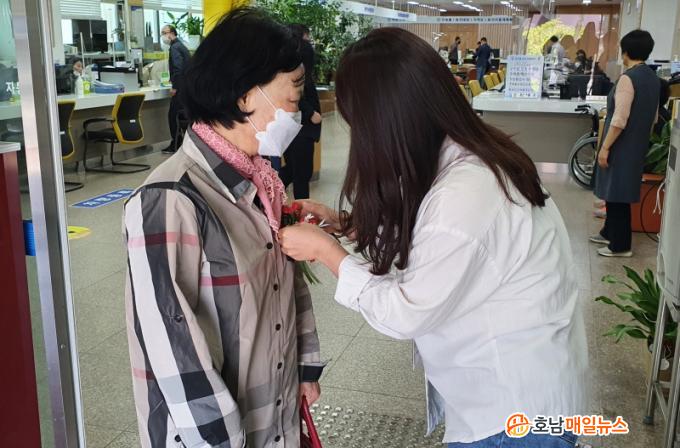 Ä«³×ÀÌ¼Ç ¼±¹°À» ¹ÞÀº ÇÑ ¾î¸£½ÅÀº¡°ÀÏÀ» º¸·¯ ¹Î¿ø½ÇÀ» ¹æ¹®ÇÑ °Í »ÓÀε¥, »ý°¢Áöµµ ¸øÇÑ ¼±¹°À» ¹Þ¾Æ ±â»Ú´Ù¡±¸ç, ¡°¶æ±íÀº ÇÏ·ç°¡ µÉ °Í °°´Ù¡±°í ÀüÇß´Ù.
