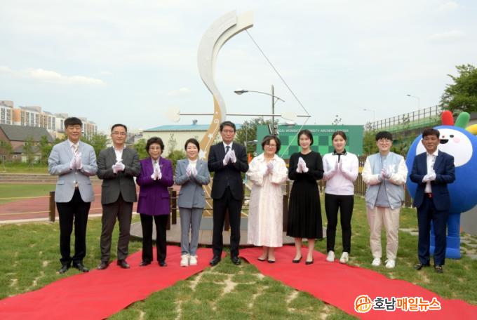 ¾ç±Ã½ºÅ¸ Æ÷ÅäÁ¸Àº ±¹³»¿¡¼ À¯ÀÏÇÑ ³ôÀÌ 3.5mÀÇ ´ëÇü ¡®È°¡¯ Á¶Çü¹°°ú Çѱ¹¾ç±Ã, ¾ç±Ã¼±¼öµéÀÇ ½Ç·ç¿§À» Çü»óÈÇÑ K-¾ç±Ã Æ÷ÅäÁ¸ÀÌ ÀÖ´Ù. ÀÌ¿Í ÇÔ²², ¸í¿¹ÀÇ Àü´ç¿¡´Â ±âº¸¹è, Ãֹ̼±, ¾È»ê µî ±¤ÁÖ¿©´ë°¡ ¹èÃâÇÑ ¼±¼öµéÀÇ ÇÚµåÇÁ¸°ÆÃ°ú ¿Ã¸²ÇÈ¿¡¼ Ȱ¾àÇÏ´Â ¸ð½ÀÀÌ ¼³Ä¡µÆ´Ù.