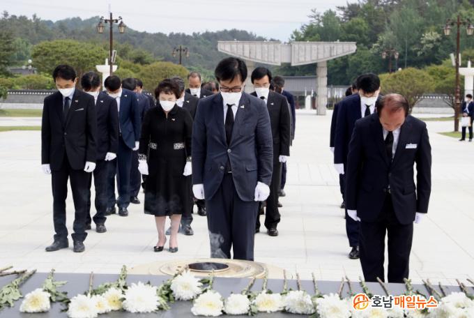 À̰èÁØ Á¤Ã¥±¹ÀåÀº ¹æ¸í·Ï¿¡ ¡°Àü³²ÀÇ Çлýµé ¹ÎÁֽùÎÀ¸·Î Àß ¼ºÀå½ÃŰ°Ú½À´Ï´Ù.¡±¶ó´Â ±ÛÀ» ³²°å´Ù. Âü¹è¿¡ ÇÔ²² ÇÑ °£ºÎµéÀº ¡°5.18¹ÎÁÖȿÀÇ ¿ª»ç¼º°ú ÂüÀǹ̸¦ µÇµ¹¾Æº¸°í, ±¤ÁÖÀÇ ¹ÎÁÖ.ÀαÇ.ÆòÈ Á¤½ÅÀÌ ¿ÂÀüÈ÷ ´ã±æ ¼ö ÀÖ´Â ±³À°À» À§ÇØ ³ë·ÂÇÒ °ÍÀ» ´ÙÁüÇÏ´Â ½Ã°£ÀÌ µÆ´Ù.¡±°í ¸»Çß´Ù.