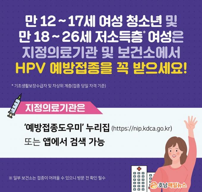 12~17¼¼(2004~2010³â»ý) ¿©¼ºÃ»¼Ò³âÀº º¸È£ÀÚ¿Í ÇÔ²² º¸°Ç¼Ò(º¸°ÇÁö¼Ò)³ª À§Å¹ÀÇ·á±â°üÀ» ¹æ¹®ÇØ Á¢Á¾¹ÞÀ» ¼ö ÀÖÀ¸¸ç, 18~26¼¼(1995~2003³â»ý) Àú¼ÒµæÃþ ¿©¼ºÀÇ °æ¿ì Á¢Á¾ ´çÀÏ ±âÃÊ»ýȰº¸Àå¼ö±ÞÀÚ ¶Ç´Â Â÷»óÀ§°èÃþ ÀÚ°Ý È®Àμ·ù¸¦ º¸°Ç¼Ò(º¸°ÇÁö¼Ò), À§Å¹ÀÇ·á±â°ü¿¡ Á¦½ÃÇÏ¸é ¹«·á·Î Á¢Á¾¹ÞÀ» ¼ö ÀÖ´Ù.