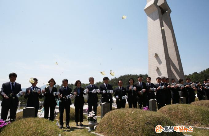 À̳¯ Çà»ç¿¡´Â À̺´¿ë ÇÔÆò±º¼ö ±ÇÇÑ´ëÇà, ±èÇü¸ð ÇÔÆò±ºÀÇȸ ÀÇÀå°ú ½Ç°ú¼ÒÀå, À¾¸éÀåÀÌ Âü¼®ÇÑ °¡¿îµ¥ ÁøÇàµÆ´Ù. Âü¼®ÀÚµéÀº 5¿ù ¿µ·ÉµéÀÇ ¸íº¹À» ºô¸ç ÇÔÆò±ºÀÌ Á÷Á¢ Ű¿î 518¸¶¸® Èò³ªºñ¸¦ ±¹¸³5¡¤18¹ÎÁÖ¹¦Áö »ó°øÀ¸·Î ³¯·Á º¸³Â´Ù.