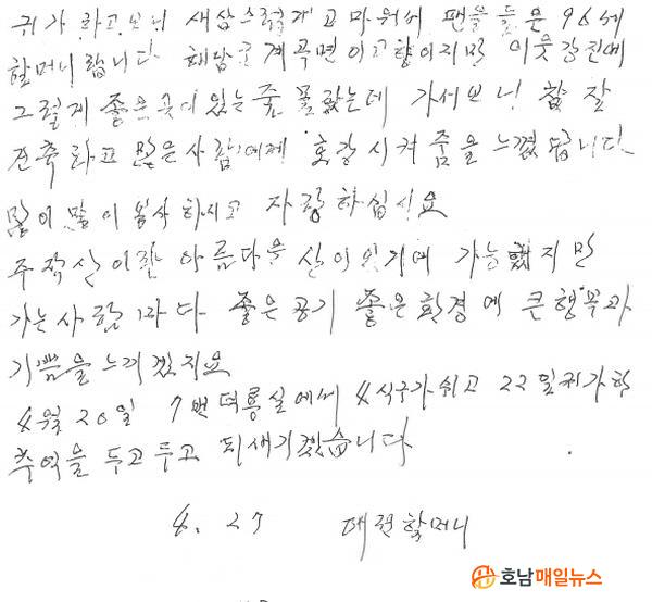 ÇÑÆí, ÀÓ⺹ ÇØ¾ç»ê¸²°úÀåÀº ¡°ÇÒ¸Ó´ÏÀÇ Áø½ÉÀÌ ´ã±ä °¨»ç ÆíÁö¸¦ ¹Þ¾ÒÀ» ¶§ ÁÖÀÛ»êÀÚ¿¬È޾縲 ¿î¿µ¿¡ Å« º¸¶÷À» ´À²¼´Ù. È޾縲»Ó¸¸¾Æ´Ï¶ó °ÁøÀ» ¹æ¹®ÇÏ´Â ¸ðµç ºÐµé°Ô °¨µ¿°ú Áñ°Å¿î Ãß¾ïÀ» µå¸± ¼ö ÀÖµµ·Ï °ü¸®ÇÏ°í ³ë·ÂÇϰڴ١±°í ÀüÇß´Ù.
