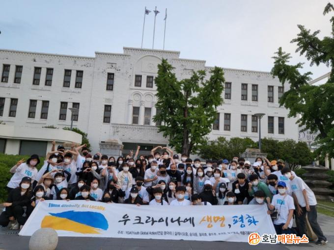 18ÀÏ ±¤ÁÖYGA¿¡ µû¸£¸é À̳¯ ÆòÈÇàÁøÀº ±¤ÁÖ YGA µ¿¾Æ¸® ¼Ò¼Ó Áß¡¤°íµîÇлý 90¿© ¸í°ú ÇÔ²²Çß´Ù. Àü³²´ëÇб³ Á¤¹®¿¡¼ ±¸µµÃ» ±¤Àå±îÁö ¡®¿ìÅ©¶óÀ̳ª¿¡ »ý¸í, ÆòÈ!¡¯¶ó´Â ÁÖÁ¦·Î ·¯½Ã¾ÆÀÇ ¿ìÅ©¶óÀ̳ª ħ·« ÀüÀï Áß´ÜÀ» Ã˱¸Çϱâ À§ÇÑ ÇàÁøÀ» ÁøÇàÇß´Ù.