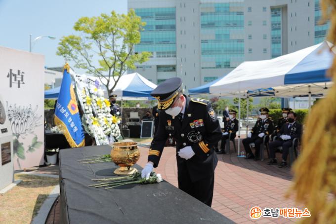 Àü³²°æÂûû¿¡¼´Â ¡Ç19³âºÎÅÍ À¯Á·°ú ÇÔ²² ¼øÁ÷°æÂû°üÀÇ Èñ»ýÀ» ¾ÖµµÇÏ´Â Ãßµµ½ÄÀ» ÁøÇàÇϰí ÀÖÀ¸¸ç, ¿ÃÇØ´Â 4¹øÂ° Ãßµµ½ÄÀÌ´Ù. ͺ ¾Èº´ÇÏ Ä¡¾È°¨Àº 5‧18 ¹ÎÁÖȿ ´ç½Ã Àü³²°æÂû±¹ÀåÀ¸·Î ÀçÁ÷ÇÏ¸é¼ ½Å±ººÎÀÇ °°æÁø¾ÐÀ» °ÅºÎÇϰí, ±¤Áֽó» °æÂû¹«±â¸¦ ¼Ò»êÇÏ¿© ½Ã¹ÎÀÇ »ý¸í°ú °æÂûÀÇ ¸í¿¹¸¦ ¼öÈ£ÇÑ ÀαǰæÂûÀÇ Ç¥»óÀÌ´Ù.