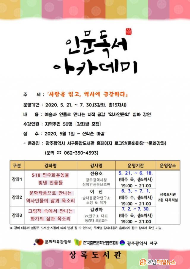 °¿¬Àº 1ÁÖÁ¦ ±¤ÁÖ±¤¿ª½Ã »óÀÓÀαǿȺÎÁî¸Ç Àü¿ëÈ£ °»çÀÇ ¡®5¡¤18 ¹ÎÁÖȿÀ» ºû³½ Àι°µé¡¯, 2ÁÖÁ¦ ¼Ö³»À½¹®Çבּ¸¼Ò ¼ÒÀå ÀÌÁø °»çÀÇ ¡®¹®ÇÐÀÛǰÀ¸·Î ¸¸³ª´Â ¿ª»çÀι°ÀÇ »î°ú ¸ñ¼Ò¸®¡¯, 3ÁÖÁ¦ PK ¿¬±¸¼Ò´ëÇ¥ ±è¸íÈ °»çÀÇ¡®±×¸²Ã¥ ¼Ó¿¡¼ ¸¸³ª´Â Ȱ¡ÀÇ »î°ú ¸ñ¼Ò¸®¡¯µî ÃÑ3°³ ÁÖÁ¦·Î ±¸¼ºµÈ´Ù.