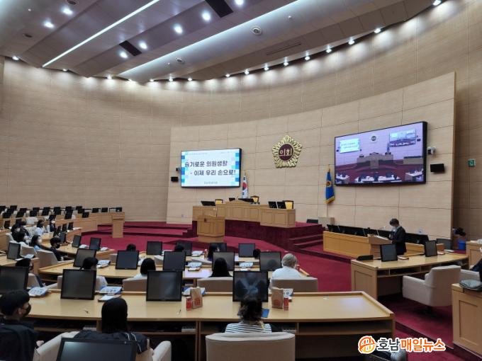 Á¤±âȸ¿¡ Âü¼®ÇÑ ±èõȫ ºÎ±³À°°¨Àº ¡°ÇлýµéÀÌ ³»³õÀº Á¤Ã¥Á¦¾ÈÀ» Àß °ËÅäÇØ Àü³²±³À° Á¤Ã¥¿¡ ¹Ý¿µµÇµµ·Ï ³ë·ÂÇϰڴÙ.¡±¸ç ¡°¼ÒÅë°ú °ø°¨´É·Â, °ÇÀüÇÑ ºñÆÇÀǽİú ÇൿÇÏ´Â ¾ç½ÉÀ» Áö´Ñ ÇлýÀÇ¿øµéÀÇ È°µ¿À» ¹ÙÅÁÀ¸·Î ÇлýÀÚÄ¡¹®È°¡ ÇǾ±â¸¦ ±â´ëÇÑ´Ù.¡±°í ¸»Çß´Ù.