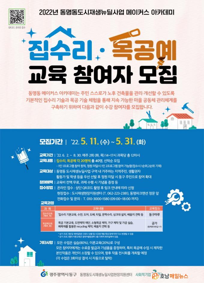 À̹ø ±³À°Àº ¡®Áý¼ö¸® Çб³¡¯¿Í ¡®¸ñ°ø¿¹ Çб³¡¯ 2°³ °úÁ¤À¸·Î ³ª´² ÁøÇàµÈ´Ù. ¸ðÁý ÀοøÀº °¢ °úÁ¤´ç 20¸íÀ¸·Î µ¿¸íµ¿ µµ½ÃÀç»ý »ç¾÷Áö ³» ÁÖ¹ÎÀ» ¿ì¼± ¼±¹ß ÈÄ µ¿±¸ ÁÖ¹ÎÀ¸·Î È®´ëÇÒ ¿¹Á¤ÀÌ¸ç ±³À°ºñ´Â Àü¾× ¹«·áÀÌ´Ù.