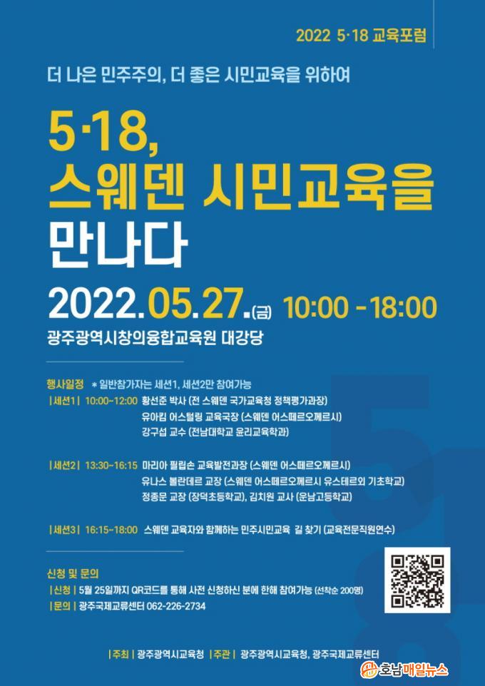 24ÀÏ ½Ã±³À°Ã»¿¡ µû¸£¸é À̹ø ¡®2022 5‧18±³À°Æ÷·³¡¯Àº ´ëÇ¥ÀûÀÎ Ç®»Ñ¸® ¹ÎÁÖÁÖÀÇ ±¹°¡ÀÎ ½º¿þµ§ÀÇ ±³À° Àü¹®°¡¿Í ±³ÀåÀ» ÃÊÃ»ÇØ Àü¸é ´ë¸éÀ¸·Î ÁøÇàÇÑ´Ù. Ȳ¼±ÁØ Àü ½º¿þµ§ ±¹°¡±³À°Ã» Á¤Ã¥Æò°¡°úÀåÀ» ºñ·ÔÇÑ ½º¿þµ§ ¾î½º¶¼¸£¿À²²¸£½Ã(Österåkers kommun) ±³À°±¹Àå°ú ±³À°¹ßÀü °úÀå, ±×¸®°í ±âÃÊÇб³ÀåÀÌ Âü¿©ÇØ Çб³ ³» ¹ÎÁÖÁÖÀÇ ±³À° ¹æ¹ý°ú Á¤Ã¥¿¡ ´ëÇØ ÇÔ²² À̾߱⠳ª´«´Ù.