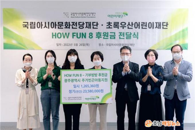 ÃÊ·Ï¿ì»ê ¾î¸°ÀÌÀç´Ü ±¤ÁÖÁö¿ªº»ºÎ(º»ºÎÀå ±èÇö¹Ì)°ú ±¹¸³¾Æ½Ã¾Æ¹®ÈÀü´çÀç´Ü(»çÀå ±è¼±¿Á)Àº 5¿ù 26ÀÏ ¡®HOW FUN 8¡¯ ³ª´®Çà»ç ¡®±âºÎ¹æ¹æ¡¯ ÈÄ¿ø±Ý Àü´Þ½ÄÀ» ÁøÇàÇÏ¿´´Ù.