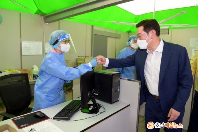 ±¤Áֽð¡ Äڷγª È®»ê¼¼·Î Ä¡¹ÐÇÑ ¹æ¿ª ´ëÀÀÀÌ ÇÊ¿äÇÏ´Ù°í ÆÇ´ÜÇØ Áö³ 2020³â 12¿ù27ÀÏ ¼³Ä¡¡¤¿î¿µ¿¡ µé¾î°£Áö 521ÀÏ ¸¸ÀÌ´Ù. À̿뼷 ½ÃÀåÀº 31ÀÏ ½Ãû ¾ß¿ÜÀ½¾Ç´ç Àӽü±º°°Ë»ç¼Ò¸¦ µÑ·¯º¸°í ÀÇ·áÁø, ÀÚ¿øºÀ»çÀÚµéÀÇ ³ë°í¸¦ °Ý·ÁÇß´Ù.