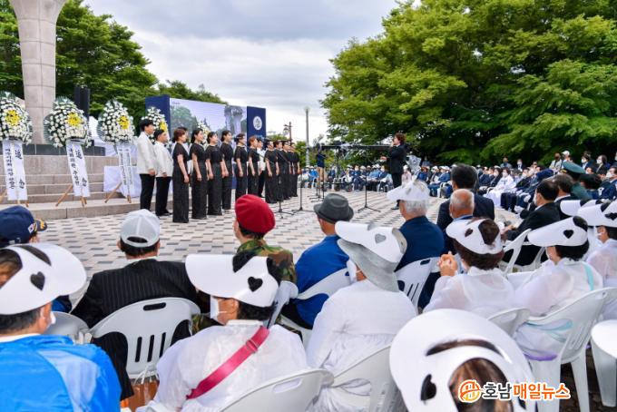 À̳¯ Ãß³ä½Ä¿¡´Â ±è¿µ·Ï Àü³²µµÁö»ç¿Í ±Ç¿ÀºÀ ¿©¼ö½ÃÀåÀ» ºñ·ÔÇØ ÁÖöÇö, ±èȸÀç ±¹È¸ÀÇ¿ø, º¸ÈÆ‧±â°ü ´ÜüÀå, ±¹°¡À¯°øÀÚ¿Í À¯Á· µî 500¿©¸íÀÌ Âü¼®Çß´Ù.