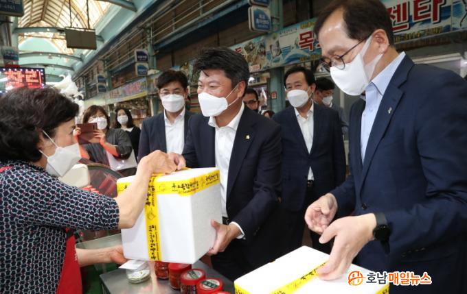 À̳¯ Á¶½Âȯ Àå°üÀº ¹Úâȯ Àü³²µµ Á¤¹«ºÎÁö»ç µî°ú ÇÔ²² ¸ñÆ÷Á¾ÇÕ¼ö»ê½ÃÀåÀ» ¹æ¹®ÇØ ¼ö»ê¹° ¹°°¡ Á¡°Ë°ú °£´ãȸ¸¦ Âü¼®ÇØ °ü°èÀÚ¸¦ °Ý·ÁÇß´Ù. ºÎÁö¸éÀû 5õ559§³, ¿¬¸éÀû 3õ523§³ Å©±âÀÇ ¸ñÆ÷Á¾ÇÕ¼ö»ê½ÃÀåÀº 1989³â µ¿¸íµ¿¾î½ÃÀåÀ¸·Î °³ÀåÇØ 2004³â ½Ã¼³Çö´ëÈ »ç¾÷À» ÅëÇØ ¸ñÆ÷Á¾ÇÕ¼ö»ê½ÃÀåÀ¸·Î ´Ù½Ã ž´Ù. ±× ÈÄ 2005³â ÀüÅë½ÃÀåÀ¸·Î ÀÎÁ¤µÆÀ¸¸ç, ÆÇ¸ÅÁ¡Æ÷ 135°³¼Ò°¡ ¸ðµÎ ¼ö»êÁ¡Æ÷·Î 231¸íÀÌ Á¾»çÇϰí ÀÖ´Ù.