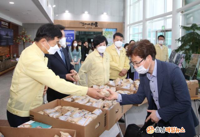 Àå¼®¿õ ±³À°°¨À» ºñ·ÔÇÑ µµ±³À°Ã» °£ºÎµéÀº À̳¯ ¿ÀÀü Äڷγª19·Î ÀÎÇØ ħüµÈ Áö¿ª°æÁ¦¸¦ °í·ÁÇØ Áö¿ª³ó»ê¹°ÀÎ °¨ÀÚ¿Í ¹æ¿ïÅ丶Å並 Ãâ±Ù±æ Á÷¿ø°ú ¹æ¹®°´¿¡°Ô ³ª´²Áá´Ù. ÀÌ´Â 80³â 5¡¤18 ´ç½Ã ½Ã¹Î°ú ÇлýµéÀÌ ÁÖ¸Ô¹äÀ» ³ª´©¸ç ½ÇõÇß´ø ¿¬´ë Á¤½ÅÀ» ÀçÇöÇÑ °ÍÀÌ´Ù.