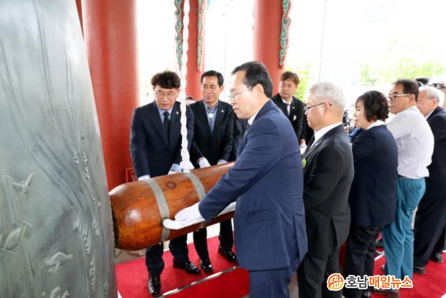 Âü¼®ÀÚµéÀº 33ȸÀÇ Å¸Á¾À» ÅëÇØ Á¦40ÁÖ³âÀ» ¸ÂÀº 5¡¤18¹ÎÁÖȿÀÇ Á¤½ÅÀ» µÇ»õ±â°í ¹ÎÁÖ¿Í ÀαÇ, ÆòÈÀÇ ±¤ÁÖ Á¤½Å È®»ê°ú ¿µÈ£³²ÀÇ ÈÇÕ ³ª¾Æ°¡ ±¹¹Î´ëÅëÇÕÀ» ¿°¿øÇß´Ù.