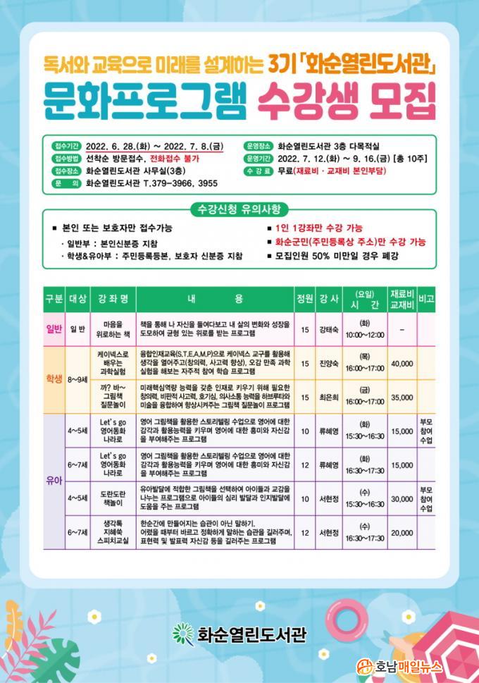 ȼø±º(±º¼ö ±¸Ãæ°ï)Àº 6¿ù 28ÀϺÎÅÍ 2022³â 3±â ¹®ÈÇÁ·Î±×·¥ ¼ö°»ýÀ» ¼±Âø¼ø ¸ðÁýÇÑ´Ù°í ¹àÇû´Ù. ȼø±º¹ÎÀÌ¸é ´©±¸³ª ¼ö°ÇÒ ¼ö ÀÖ°í ȼø¿¸°µµ¼°ü 3Ãþ »ç¹«½ÇÀ» ¹æ¹®ÇØ ¼ö° ½ÅÃ»ÇØ¾ß ÇÑ´Ù. ÀüÈ ½ÅûÀº ¹ÞÁö ¾Ê´Â´Ù.