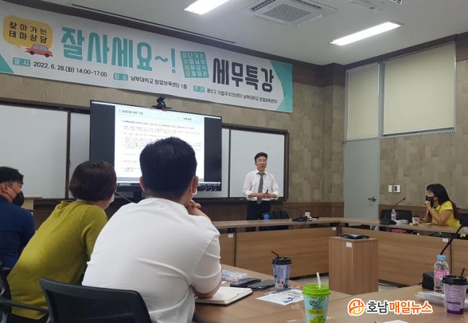 ¡®Àß³ª°¡´Â »çÀå´ÔÀÇ ¼¼¹«»ó½Ä ¿äÁ¡Á¤¸®¡¯¸¦ ÁÖÁ¦·Î ÁøÇàÇÑ À̹ø Å׸¶»ó´ã¿¡´Â ³²ºÎ´ëÇб³ â¾÷º¸À°¼¾ÅÍ ÀÔÁÖ±â¾÷Àΰú °ü³» ±â¾÷ÀÎ, ¼Ò»ó°øÀÎ µî 40¿© ¸íÀÌ Âü¼®Çß´Ù.