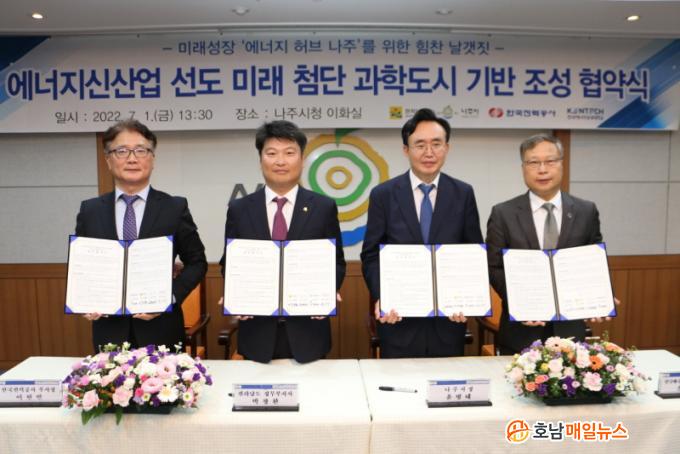 ³ªÁÖ½Ã(½ÃÀå À±º´ÅÂ)´Â Áö³ 1ÀÏ Ã»»ç ÀÌȽǿ¡¼ Àü³²µµ, ÇÑÀü, Çѱ¹¿¡³ÊÁö°ø´ë µî 3°³ ±â°ü°ú ¡®¿¡³ÊÁö½Å»ê¾÷ ¼±µµ ¹Ì·¡ ÷´Ü°úÇеµ½Ã ±â¹Ý Á¶¼º¡¯À» À§ÇÑ ¾÷¹« Çù¾à(MOU)À» ü°áÇß´Ù°í 4ÀÏ ¹àÇû´Ù.
