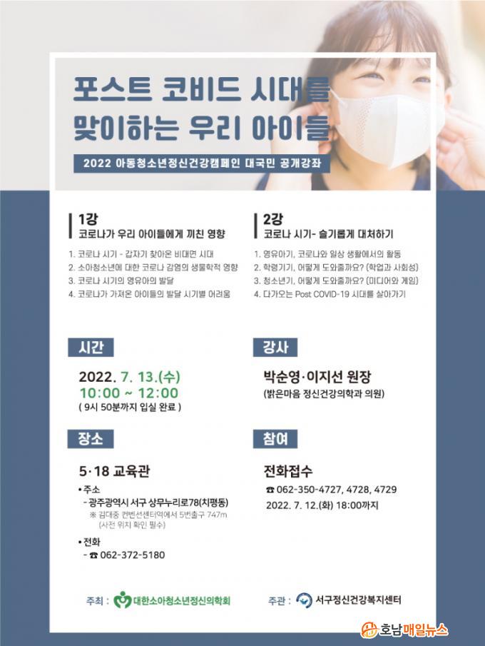Áö¿ª ±³»ç¿Í Çкθð µî 100¿© ¸íÀ» ´ë»óÀ¸·Î ±¤ÁÖ 5.18 ±³À°°ü(Ä¡Æòµ¿ ¼ÒÀç)¿¡¼ ÁøÇàµÇ´Â °Á¿¡´Â ¼Ò¾Æ․û¼Ò³â Á¤½Å°Ç°ÀÇÇаú Àü¹®ÀǸ¦ °»ç·Î ÃʺùÇÏ¿© ¡ã 1°, Äڷγª°¡ ¿ì¸® ¾ÆÀ̵鿡°Ô ³¢Ä£ ¿µÇâ ¡ã 2°, Äڷγª ½Ã±â, ½½±â·Ó°Ô ´ëóÇϱ⸦ ÁÖÁ¦·Î °Àǰ¡ ÁøÇàµÈ´Ù.