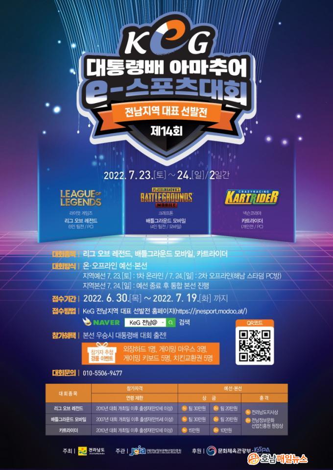 Àü¶ó³²µµ´Â ¿À´Â 19ÀϱîÁö Áö¿ª´ëÇ¥ ¼±¹ßÀü ´©¸®Áý(https://jnesport.modoo.at/)À» ÅëÇØ Âü°¡ ½ÅûÀ» ¹Þ´Â´Ù°í ¹àÇû´Ù. ´ëȸ Á¾¸ñÀº ¸®±×¿Àºê·¹Àüµå(5ÀÎ ÆÀÀü), ¹èƲ±×¶ó¿îµå ¸ð¹ÙÀÏ(4ÀÎ ÆÀÀü), īƮ¶óÀÌ´õ(°³ÀÎÀü), 3°³ Á¾¸ñÀÌ´Ù.