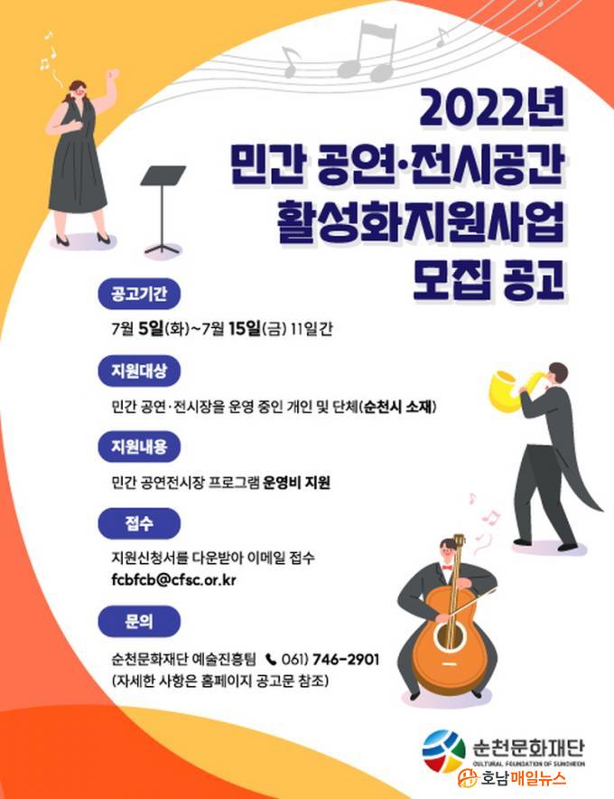 Áö¿ø´ë»óÀº ¼øÃµ½Ã ¼ÒÀç ¹Î°£ ¹®È½Ã¼³À» µî·ÏÇÏ¿© ¿î¿µ ÁßÀÎ ¿¹¼úºÐ¾ß Àü¹® ´Üü ¶Ç´Â °³ÀÎÀ¸·Î, 1°÷´ç ÃÖ¼Ò 300¸¸¿ø¿¡¼ ÃÖ´ë 500¸¸¿ø¾¿ 5°³ÆÀ ³»¿Ü·Î ¼±Á¤ÇØ Áö¿øÇÒ °èȹÀÌ´Ù.Áö¿ø½ÅûÀº ¿À´Â 15ÀϱîÁö »ç¾÷°èȹ¼ µî ½Åû¼·ù¸¦ °®Ãç ¼øÃµ¹®ÈÀç´ÜÀ» ¹æ¹®Çϰųª ÀüÀÚ¿ìÆíÀ¸·Î ½ÅûÇÏ¸é µÈ´Ù.