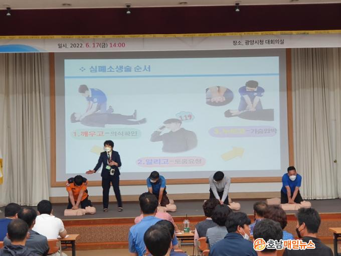 ¹°³îÀÌ »ç°í ¿¹¹æ°ú »ç°í ¹ß»ý ½Ã ½Å¼ÓÇÏ°Ô Ãʵ¿´ëóÇÒ ¼ö ÀÖ´Â ¿ª·®À» °ÈÇϱâ À§ÇØ ¹èÄ¡ Àü ±¤¾ç¼Ò¹æ¼¿Í ÇÔ²² ½ÉÆó¼Ò»ý¼ú, ±âº» ÀÀ±Þ󸮹ý, ±¸¸íÀåºñ »ç¿ë ¿ä·É µî ¾ÈÀü±³À°À» ½Ç½ÃÇß´Ù.