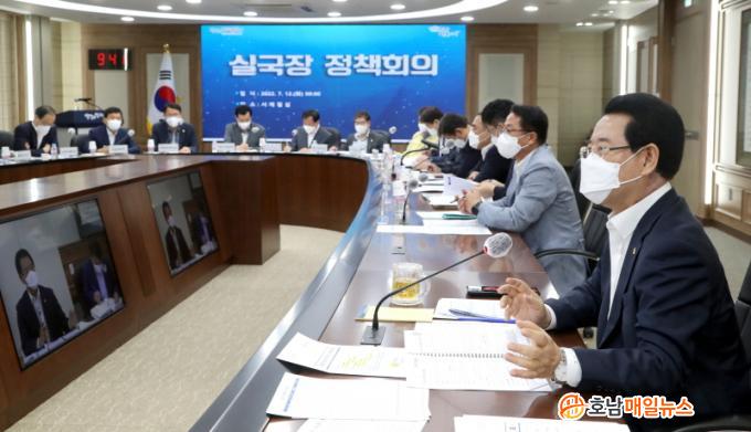 ±è Áö»ç´Â À̳¯ ¿ÀÀü µµÃ» ¼ÀçÇʽǿ¡¼ ¹Î¼±8±â ù ½Ç±¹Àå Á¤Ã¥È¸ÀǸ¦ ¿¾î ¡°Áö³ 1ÀÏ ¡®¼¼°è·Î ¿õºñÇÏ´Â ´ëµµ¾à! Àü³² Çູ½Ã´ë¡¯ ºñÀü ¼±Æ÷½Ä°ú ÇÔ²² ¹Î¼±8±â¸¦ »õ·Ó°Ô ½ÃÀÛÇß´Ù¡±¸ç À̰°ÀÌ ¹àÇû´Ù.