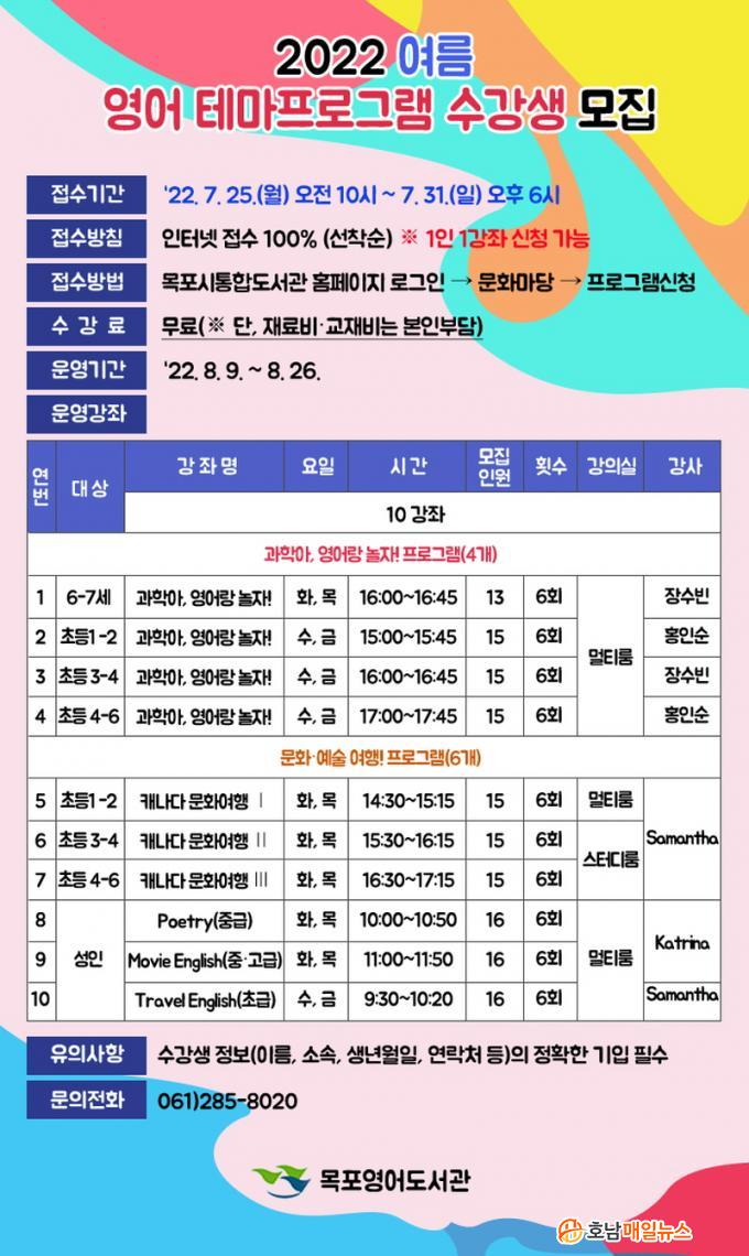 ¼ºÀÎ ´ë»óÀ¸·Î´Â ÇØ¿Ü¿©Çà Áß »ç¿ëÇÏ´Â ¿µ¾îÇ¥Çö°ú ¼¼°è ¿©·¯ ³ª¶óÀÇ ÃàÁ¦¸¦ ¹è¿ì´Â ¡®¿©Çà ¿µ¾î¡¯, ÀÛǰÀ» °¨»óÇÏ¸ç ¿µ¹Ì±Ç ¹®ÇÐÀ» Á¢ÇÏ´Â ¡®¿µ¹Ì½Ã¡¯, ¿µÈ¸¦ º¸¸ç ½Ç»ýȰ¿¡¼ÀÇ ¿µ¾îÇ¥Çö°ú ¹®È¸¦ ¹è¿ì´Â ¡®¿µÈ ¿µ¾î¡¯ µî 3°³ °Á°¡ ¿î¿µµÈ´Ù.