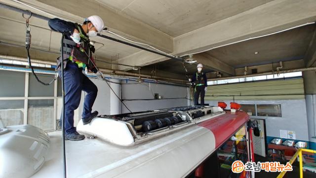 ´ë»óÀº ±¤ÁÖ ½Ã³»¹ö½º ȸ»ç 10°÷, 1044´ë·Î, 5¿ù ¸»±îÁö ȸ»çº°·Î ¿¡¾îÄÁÀ» ¼¼Ã´ÇÏ°í ³Ã¸Å°¡½º, ³ëÁñ, ÇÊÅÍ, ȯdz±â ¸ðÅÍÀÛµ¿ »óÅ µîÀ» È®ÀÎÇϵµ·Ï ÇÑ´Ù. ´õºÒ¾î ¿ÜºÎ±â¿Â »ó½Â°ú °ú¿·Î ¹ß»ýÇÏ´Â ÈÀç À§ÇèÀ» ¿¹¹æÇϱâ À§ÇØ ¿£Áø·ë°ú ³»¾Ð¿ë±â µîµµ Á¡°ËÇÑ´Ù.