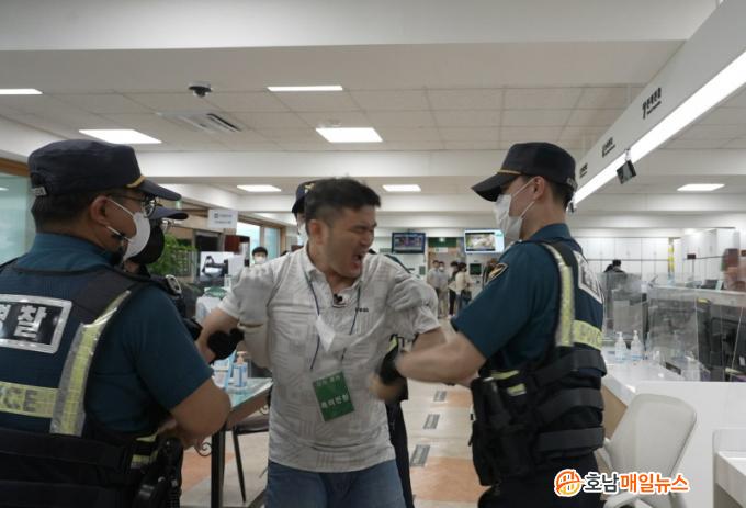 ƯÈ÷ Àü¶ó³²µµÁö¹æ°æÂûû 112Á¾ÇÕ»óȲ½Ç°ú Á÷Á¢ ¿¬°áµÈ ºñ»óº§·Î °æÂû°üÀÌ °¡ÇØ ¹Î¿øÀÎÀ» Á¦¾ÐÇÏ´Â »óȲÀ» ¿¬ÃâÇØ ½ÇÁ¦»óȲÀ» ¹æºÒÄÉ Çß´Ù.