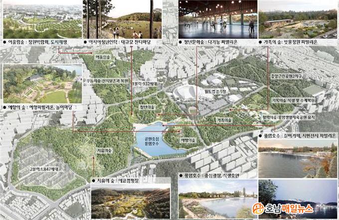ÀÌÁß Áß¾Ó°ø¿ø(1Áö±¸)´Â °ø¿øÁß½É Ç³¾ÏÈ£¼ö¿Í ´Ù¾çÇÑ ±â´ÉÀ» °¡Áø 8°³ÀÇ Å׸¶½£ÀÌ ¾î¿ï¾îÁø ½£±â¹Ý µµ½Ã°ø¿øÀ¸·Î, µµ½ÃÁ¤¿ø¼¾ÅÍ, Èú¸µÄ·ÇÎÀå, ³ÐÀº Àܵð±¤Àå, ºø¹°»ýÅ¿ø, Çѱ¹¾ß»ý½Ä¹°¿Â½Ç, ¾î¸°ÀÌ ÇÇÅ©´Ð ¸¶´ç µîÀÇ °ø°£½Ã¼³ÀÌ Á¶¼ºµÈ´Ù.