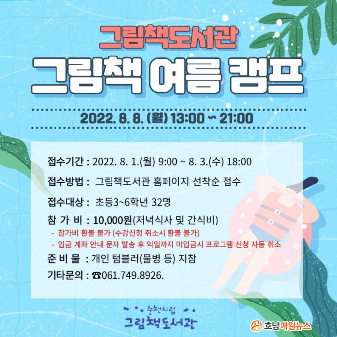 Ä·ÇÁ Âü¿© Á¢¼ö´Â 8¿ù 1ÀϺÎÅÍ 3ÀϱîÁö ¼øÃµ½Ã¸³±×¸²Ã¥µµ¼°ü ȨÆäÀÌÁö¿¡¼ ¼±Âø¼øÀ¸·Î ½Åû °¡´ÉÇϸç Âü°¡ºñ´Â ¸¸¿øÀÌ´Ù. ±âŸ ÀÚ¼¼ÇÑ »çÇ×Àº ±×¸²Ã¥µµ¼°ü ȨÆäÀÌÁö¸¦ Âü°íÇϰųª ÀüÈ(061-749-8926)·Î ¾È³»¹ÞÀ» ¼ö ÀÖ´Ù.