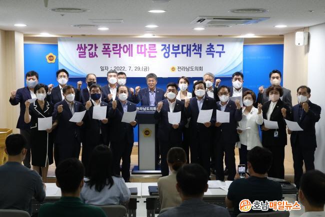 ¼º¸íÀ» ¹ßÇ¥ÇÑ Àü³²µµÀÇȸ ½ÅÀÇÁØ ³ó¼ö»êÀ§¿øÀå(´õºÒ¾î¹ÎÁִ硤¿Ïµµ2)Àº ¡°Àü³²Àº Ȥµ¶ÇÑ °¡¹³°ú ½Ä·®¾Èº¸ À§±â ¼Ó¿¡¼µµ ½Ä·®°ø±Þ ±âÁö·ÎÀÇ ¿ªÇÒÀ» ´ÙÇϰí ÀÖÀ¸³ª, °í¹°°¡ ½Ã´ë ³ªÈ¦·Î ½Ò°ª Æø¶ôÀ¸·Î ³ó¾÷ÀÎÀÌ °íÅë¹Þ°í ÀÖ´Ù¡±°í ±âÀÚȸ°ß ¹è°æÀ» ¼³¸íÇß´Ù.