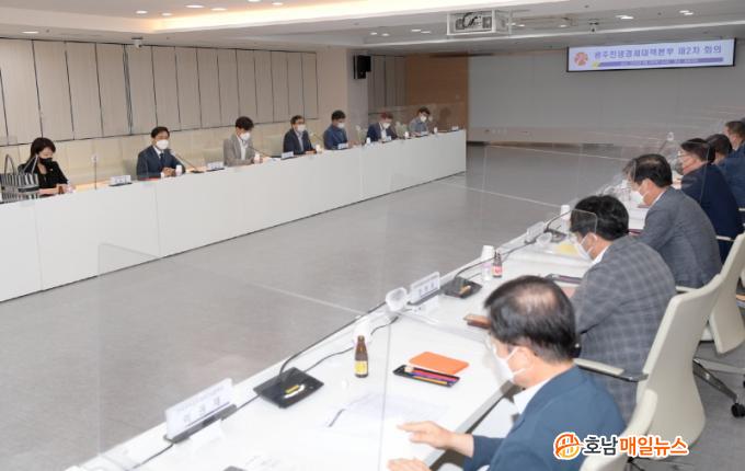½Ã´Â 4ÀÏ ±è±¤Áø ¹®È°æÁ¦ºÎ½ÃÀå ÁÖÀç·Î ±¤Áֹλý°æÁ¦´ëÃ¥º»ºÎ Á¦2Â÷ ȸÀǸ¦ ¿°í ±¤ÁÖ»ó°øÈ¸ÀǼÒ, ±¤Áְ濵ÀÚÃÑÇùȸ, ±¤ÁÖ¡¤Àü³²Áö¹æÁß¼Òº¥Ã³±â¾÷û, ±¤ÁÖÁö¹æ°í¿ë³ëµ¿Ã», Çѱ¹ÀºÇà ±¤ÁÖ¡¤Àü³²º»ºÎ, ±ÝÀ¶°¨µ¶¿ø ±¤ÁÖ¡¤Àü³²Áö¿ø µî 17°³ °æÁ¦´Üü, À¯°ü±â°ü µîÀÌ Âü¼®ÇÑ °¡¿îµ¥ »ç¾÷°èȹÀ» ³íÀÇÇß´Ù.