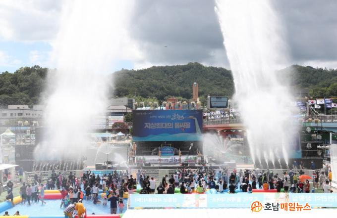 3³â ¸¸¿¡ °³ÃÖµÈ À̹ø ¹°ÃàÁ¦´Â Àü±¹¿¡¼ ¸ô·Áµç °ü±¤°´µéÀÇ È£ÆòÀ» ¹ÞÀ¸¸ç ´ëÇѹα¹ ¿©¸§ ´ëÇ¥ÃàÁ¦·Î¼ °ÇÀçÇÔÀ» °ú½ÃÇß´Ù. ÃàÁ¦ ±â°£À» ±âÁ¸ 7ÀÏ¿¡¼ 9ÀÏ·Î È®´ëÇϸç 2¹øÀÇ ÁÖ¸»À» ³¢°í Çà»ç°¡ ÁøÇàµÈ Á¡µµ ÁÖ¸» °ü±¤°´À» À¯ÀÔ¿¡ È¿°ú¸¦ ³Â´Ù´Â Æò°¡´Ù.