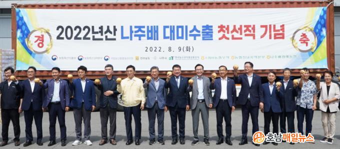 À̳¯ Çà»ç´Â ºÎ´öµ¿¿¡ À§Ä¡ÇÑ ³ªÁÖ¹èÀ¯Åë¼¾ÅÍ ¼öÃâ¼±°úÀå¿¡¼ À±º´Å ½ÃÀå, ½ÅÁ¤ÈÆ ±¹È¸ÀÇ¿ø, À̻󸸽ÃÀÇȸÀÇÀå, ±èÃáÁø Çѱ¹³ó¼ö»ê½ÄǰÀ¯Åë°ø»ç(aT)»çÀå, ¹é»óÇÑ ³ó¸²Ãà»ê°Ë¿ªº»ºÎ ±¤ÁÖ¼ÒÀå, ÁöÁؼ· ³óÇù¹«¿ª ´ëÇ¥ÀÌ»ç, À̵¿Èñ ³ªÁÖ¹è¿ø¿¹Çùµ¿Á¶ÇÕÀå µîÀÌ Âü¼®ÇÑ °¡¿îµ¥ ÁøÇàµÆ´Ù.