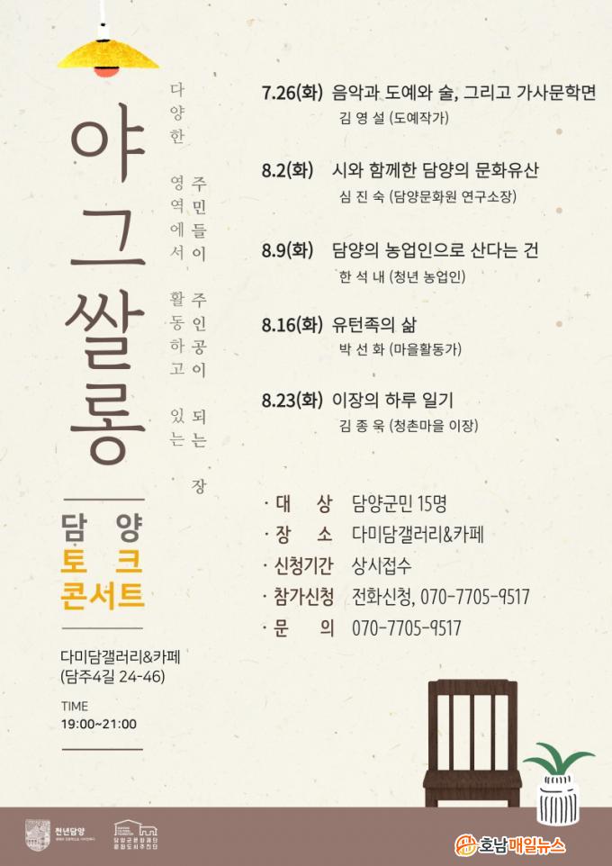 ´ã¾ç±º¹®ÈÀç´Ü(ÀÌ»çÀå À̺´³ë)Àº ¿À´Â 8¿ù 23ÀϱîÁö ¹®ÈÅäÅ©ÄܼƮ ¡®¾ß±×½Ò·Õ¡¯À» °³ÃÖÇÑ´Ù°í ¹àÇû´Ù. ¾ß±×½Ò·ÕÀº µµ¿¹ÀÛ°¡, û³â³ó¾÷ÀÎ, ¸¶À»ÀÌÀå µî ´Ù¾çÇÑ ¿µ¿ª¿¡¼ Ȱµ¿Çϰí ÀÖ´Â ÁֹεéÀÌ ÁÖÀΰøÀÌ µÇ¾î ´ã¾ç¿¡¼ÀÇ »îÀ» Ç®¾î³»°í Âü°¡ÀÚµé°ú °ø°¨ÇÏ´Â ¡®¼ö´ÙÇü¡¯ ÅäÅ©ÄܼƮ´Ù.