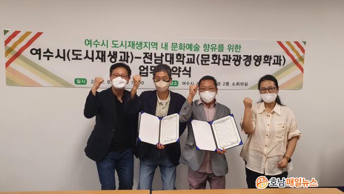 À̳¯ Çù¾à½Ä¿¡´Â Á¤¼öȯ ¿©¼ö½Ã µµ½ÃÀç»ý°úÀå°ú ±è´ëÇö Àü³²´ëÇб³ ¹®È°ü±¤°æ¿µÇаúÀåÀÌ Âü¼®ÇØ »óÈ£Çù·ÂÀ» ¾à¼ÓÇß´Ù. ÁÖ¿ä Çù¾à³»¿ëÀ¸·Î´Â ¡ã¿©¼ö½Ã µµ½ÃÀç»ý Á¤Ã¥»ç¾÷ °¡Ä¡ °øÀ¯ ¹× Çù·Â ¡ãÁö¿ª ³» ¹®È¿¹¼ú ºÐ¾ß Ȱ¼ºÈ¸¦ À§ÇÑ Æ¯È Áö¿ø»ç¾÷ ¹× ÇÁ·Î±×·¥ ¹ß±¼ ¡ãÁö¼ÓÀû »óÈ£Çù·Â ÁõÁøÀ» À§ÇÑ »çÇ× µîÀÌ ÀÖ´Ù.