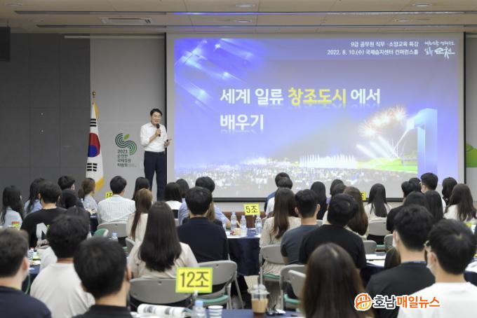 À̹ø ±³À°Àº ¹Î¼±8±â ½ÃÁ¤ ¹æÇâ¿¡ ´ëÇÑ °ø°¨´ë¸¦ Çü¼ºÇϰí ÀçÁ÷±â°£ 3³â À̳»ÀÎ Á÷¿øÀÇ ÇöÀå ½Ç¹«´É·ÂÀ» Çâ»óÇϱâ À§ÇØ ¸¶·ÃµÇ¾ú´Ù. ±â¼öº° ´Ù¸¥ ³»¿ëÀ¸·Î ½ÃÇàµÈ ±³À°Àº ¼±¹è․µ¿·á°¡ °»ç°¡ µÇ¾î ³ëÇϿ츦 °øÀ¯ÇÏ´Â ¡®³ªµµ°»ç¡¯ÀÇ °ø¹®¼ ÀÛ¼º, ȸ°è½Ç¹«, ¼øÃµÀÇ ¼¼°è¹®ÈÀ¯»ê µî 6°³ ±³À°°ú Á¶Á÷¼ÒÅë°ú ¹Î¿øÀÀ´ë µî 4°³ Àü¹® ±³À°À¸·Î ±¸¼ºµÇ¾ú´Ù.