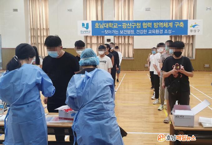 È®ÁøÀÚ¸¦ Á¶±â¿¡ ÆÄ¾ÇÇϰí, Áö¿ª»çȸ È®»êÀ» Â÷´ÜÇϱâ À§ÇÑ ¼±Á¦Àû Á¶Ä¡´Ù.±¤»ê±¸´Â 19ÀÏ È£³²´ëÇб³ üÀ°°ü¿¡ ÃâÀå °Ë»ç¼Ò¸¦ ¼³Ä¡Çß´Ù. À̳¯ºÎÅÍ ¾ÕÀ¸·Î 2ÁÖ°£ À̰÷¿¡¼ ÇØ¿Ü¿¡¼ ÀÔ±¹ÇÑ À¯ÇлýÀ» ´ë»óÀ¸·Î Äڷγª19 °Ë»ç¸¦ ½ÃÇàÇÑ´Ù.