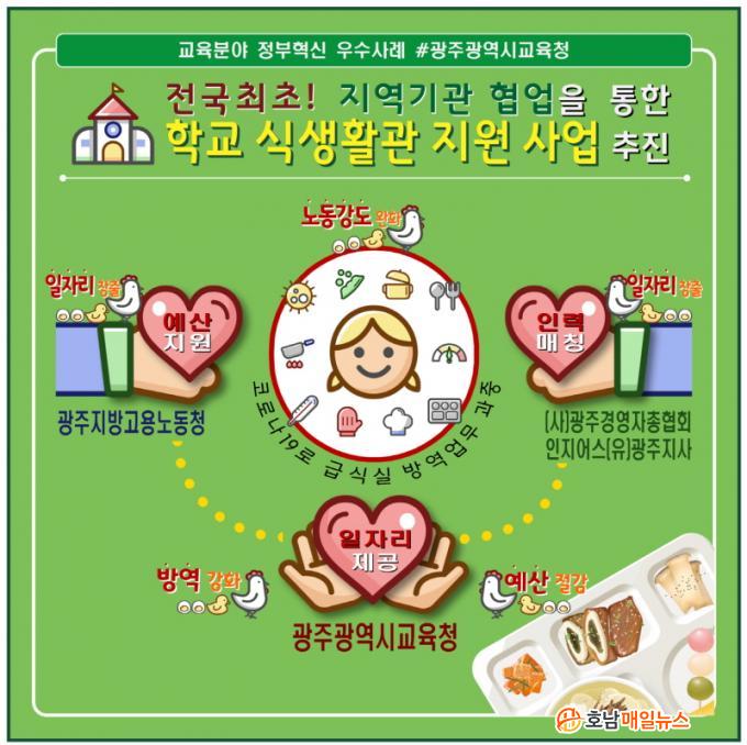 ½Ã±³À°Ã»Àº °¨¿°º´À¸·ÎºÎÅÍ ¾ÈÀüÇÑ Çб³ ±Þ½Ä½Ç Á¶¼ºÀ» À§ÇÑ ¹æ¿ª¡¤¼Òµ¶ °È·Î ±Þ½Ä¾÷¹« Á¾»çÀÚµéÀÇ ¾÷¹«°¡ °úÁßÇØÁöÀÚ Çб³ ÇöÀåÀ» Áö¿øÇϱâ À§ÇØ ±¤ÁÖÁö¹æ°í¿ë³ëµ¿Ã», (»ç)±¤Áְ濵ÀÚÃÑÇùȸ °£ ÇùÀÇü¸¦ ±¸¼ºÇß´Ù. À̸¦ ÅëÇØ ±¤ÁÖÁö¹æ°í¿ë³ëµ¿Ã»Àº ÀÏÀÚ¸® ±¸ÀÎÈñ¸ÁÀÚÀÇ ÀΰǺñ¸¦ Áö¿ø, (»ç)±¤Áְ濵ÀÚÃÑÇùȸ´Â ±¸ÀÎÈñ¸ÁÀÚ¸¦ ¸ÅĪ, ±¤Áֽñ³À°Ã»Àº ÀÏÀÚ¸®¿Í ÀϰæÇè Àå¼Ò¸¦ Á¦°øÇÏ°Ô µÆ´Ù.