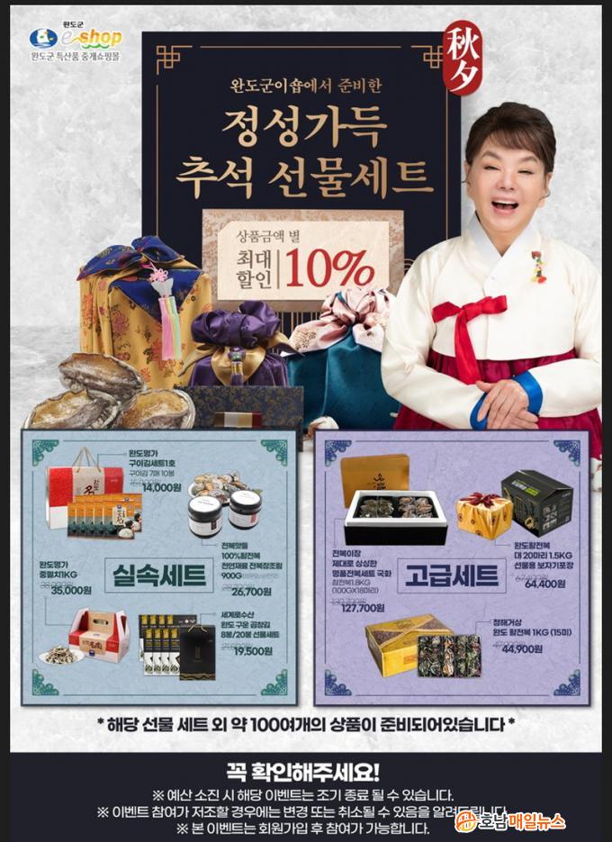 ¿Ïµµ±ºÀ̼ó(www.wandofood.go.kr)ÀÇ ¡®Ãß¼® ¼±¹° ±âȹÀü¡¯Àº ¾÷ü´ç ÆÇ¸Å °¡°Ý ´ëºñ 5% ÇÒÀÎµÈ ±Ý¾×À¸·Î Ư»êǰÀ» ±¸ÀÔÇÒ ¼ö ÀÖÀ¸¸ç, ¿Ïµµ±ºÀ̼ó ȸ¿øÀº »óǰ ±Ý¾× º°·Î ÃÖ´ë 10%(ÃÖ´ë 3,000¿ø) ÀÚµ¿ ÇÒÀÎÀÌ Àû¿ëµÈ´Ù.