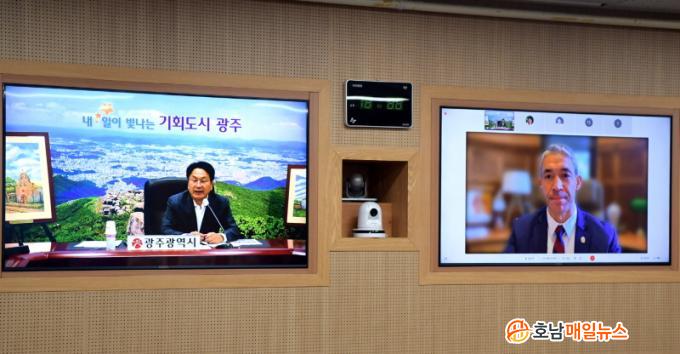 °±âÁ¤ ±¤ÁÖ±¤¿ª½ÃÀåÀº ¹Ì±¹ »÷¾ÈÅä´Ï¿À ÀڸŰῬ 40ÁÖ³âÀ» ¸Â¾Æ 24ÀÏ ¿ÀÀü ½Ãû¿¡¼ ·Ð ´Ï·»¹ö±× »÷¾ÈÅä´Ï¿À ½ÃÀå°ú È»óȸÀǸ¦ ÁøÇàÇÏ°í µÎ µµ½Ã °£ Çù·Â¹æ¾È µîÀ» ³íÀÇÇß´Ù.