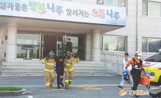 Æø¹ß¹° Å×·¯·Î ÀÎÇÑ Ã»»ç °Ç¹° ºØ±«¿Í ÈÀç ¹ß»ýÀ» °¡»óÇÑ À̳¯ ÈÆ·ÃÀº ÀÎ¸í ´ëÇÇ¡¤±¸Á¶, ÈÀç Áø¾Ð, ½Ã¼³¹° º¹±¸ µî À¯°ü±â°ü °£ °øÁ¶¿¡ µû¸¥ ½Å¼ÓÇÑ Àç³´ëÀÀ¿¡ ÁßÁ¡À» µÎ°í ÁøÇàµÆ´Ù. ÈÆ·ÃÀå¿¡´Â ³ªÁÖ½Ã¿Í ¼Ò¹æ¼, °æÂû¼, ±ººÎ´ë, Çѱ¹Àü·Â, KT µî 6°³ À¯°ü±â°ü °ü°èÀÚ 100¿©¸í°ú ¼Ò¹æ¡¤±¸±ÞÂ÷ µî Àç³ Â÷·® 10¿©´ë°¡ µ¿¿øµÆ´Ù.