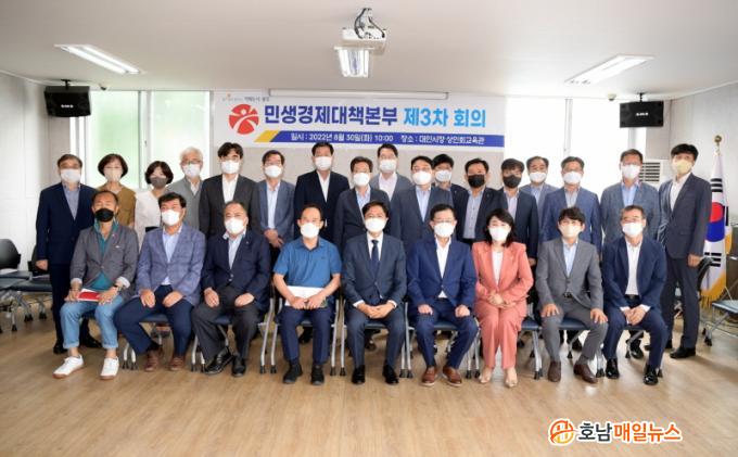 ½Ã´Â 30ÀÏ ±è±¤Áø ¹®È°æÁ¦ºÎ½ÃÀå ÁÖÀç·Î ±¤ÁÖ´ëÀνÃÀå »óÀÎȸ±³À°°ü¿¡¼ ±¤Áֹλý°æÁ¦´ëÃ¥º»ºÎ ȸÀǸ¦ ¿°í Çѱ¹³ó¼ö»ê½ÄǰÀ¯Åë°ø»ç ±¤ÁÖÀü³²º»ºÎ, ¼Ò»ó°øÀνÃÀåÁøÈï°ø´Ü ±¤ÁÖÈ£³²Áö¿ªº»ºÎ, Áß¼Òº¥Ã³±â¾÷ÁøÈï°ø´Ü ±¤ÁÖÁö¿ªº»ºÎ, ±¤Áֽſ뺸ÁõÀç´Ü, 5°³ ÀÚÄ¡±¸ µî 23°³ À¯°ü±â°üÀÌ Âü¼®ÇÑ °¡¿îµ¥ ¹°°¡¾ÈÁ¤‧¹Î»ý´ëÃ¥À» ³íÀÇÇß´Ù.