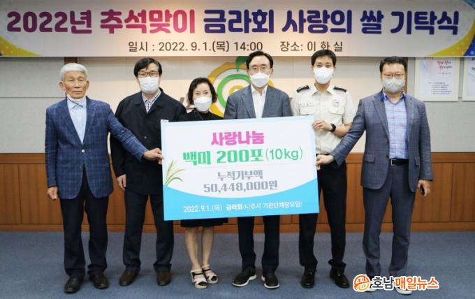 ½Ãû ÀÌȽǿ¡¼ ÁøÇàµÈ ±âŹ½Ä¿¡´Â À±º´Å ½ÃÀå, ¹Ú¿ëÁÖ ¼Ò¹æ¼Àå, ¹ÚÀ±ÀÚ ±³À°Áö¿øÃ» ±³À°Àå, ±Ç¿ë´ë ³óÇù³ªÁÖ½ÃÁöºÎÀå, ±è±Ôµ¿ ÃàÇùÁ¶ÇÕÀå, ±Ç¿µÈÆ KT&G³ªÁÖÁö»çÀå µî ±Ý¶óȸ¿ø 6¸íÀÌ Âü¼®Çß´Ù. ±âŹ ½ÒÀº 10kg¹é¹Ì 200Æ÷´ë(450¸¸¿ø »ó´ç)·Î Ãß¼® ¿¬ÈÞ Àü±îÁö Ȧ¸ö ¾î¸£½Å, ´Ù¹®È°¡Á¤, Á¶¼Õ°¡Á¤ µî Ãë¾à°èÃþ 100°¡±¸¿¡ 2Æ÷´ë¾¿ Àü´ÞµÉ ¿¹Á¤ÀÌ´Ù.